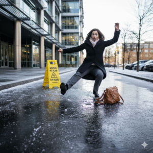 凍結・積雪リスクの最も身近で深刻な被害は、「転倒事故」です。